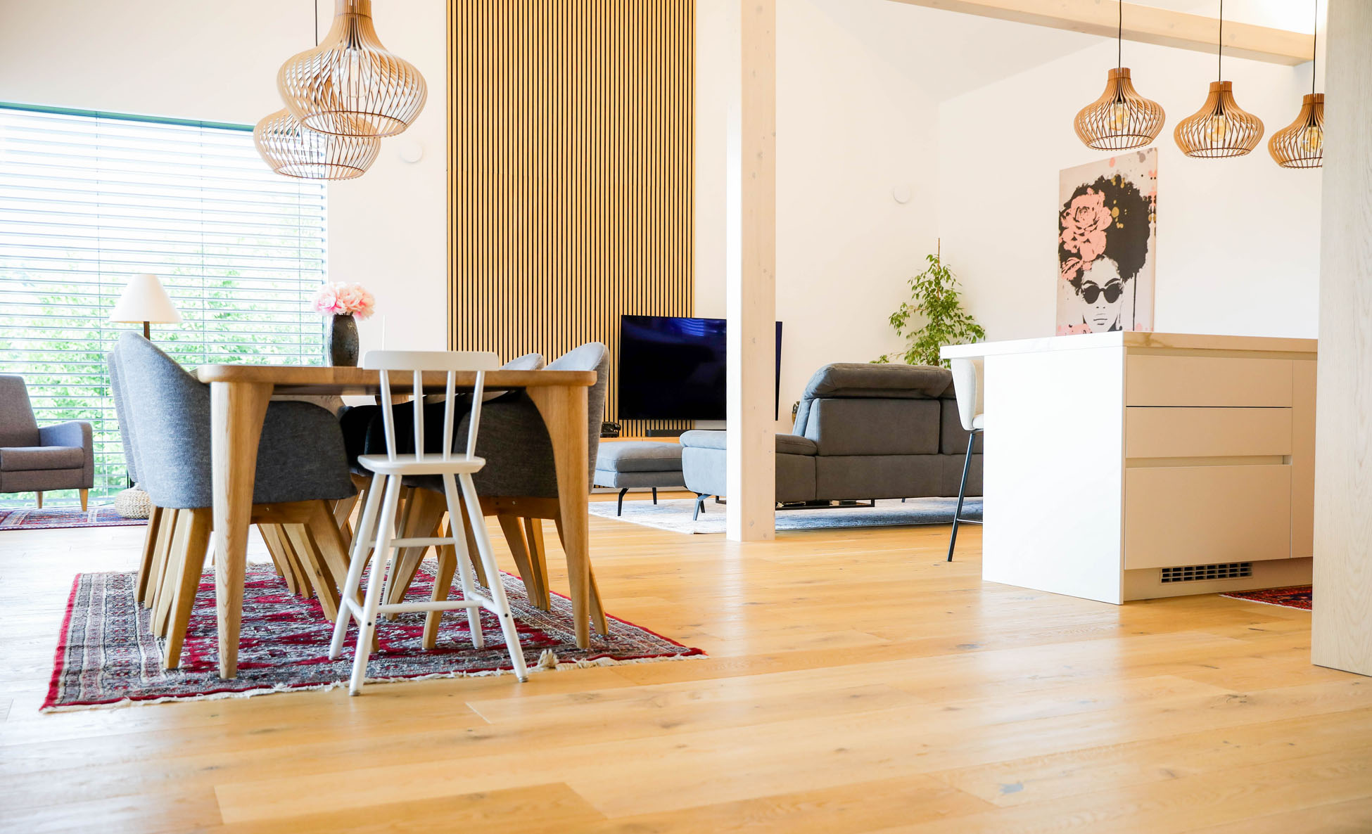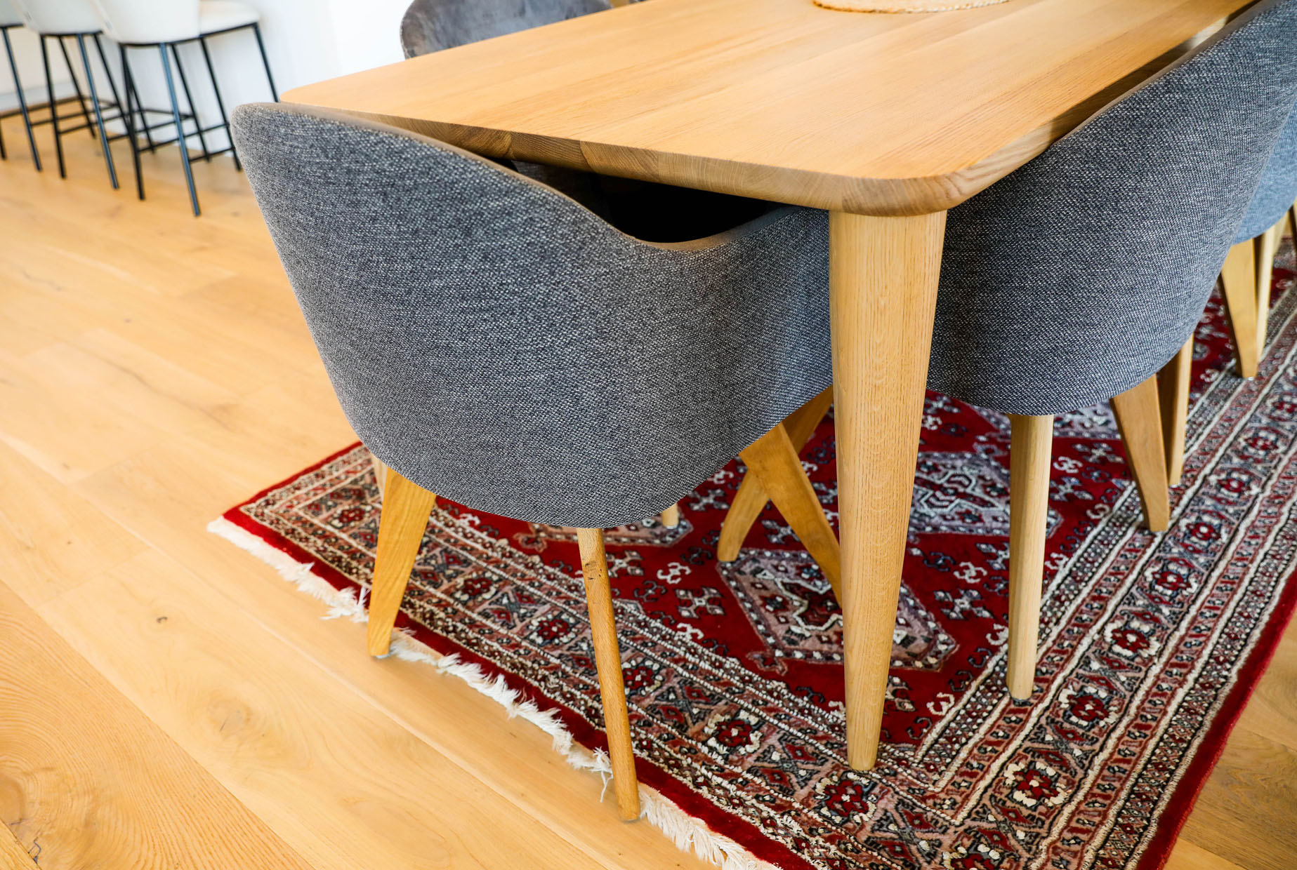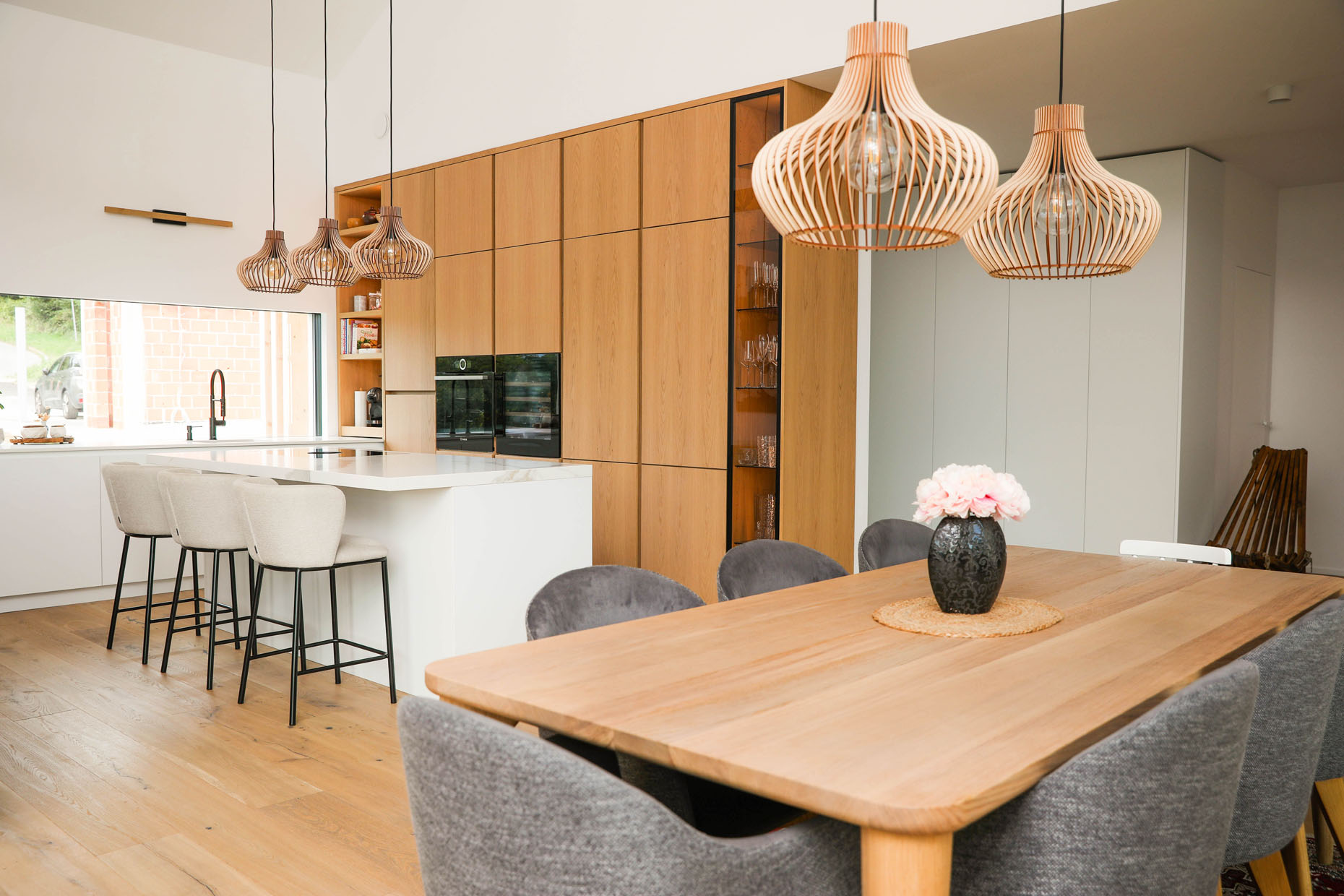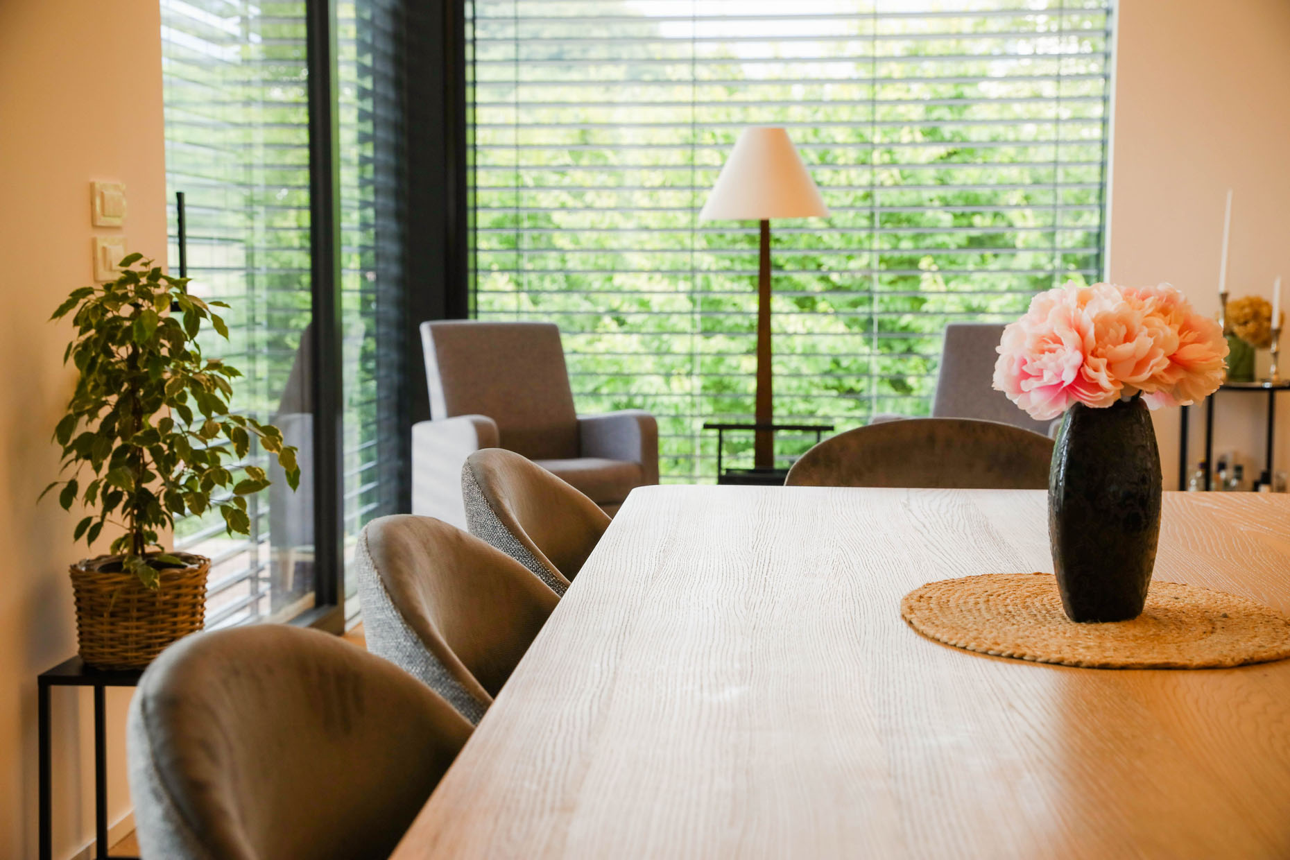 Jedilnica, kjer se čas upočasni in trenutki štejejo. Lauden masivna hrastova miza z mat lakom in izstopajočo obliko ni le kos pohištva, ampak prostor, kjer se zbirajo smeh, pogovori in dobra hrana. Posebna oblika mize prinese svežino v prostor in poveže sodobno kuhinjo z domačim utripom jedilnice, medtem ko mehki stoli ob njej vabijo, da ostaneš malo dlje in uživaš v družbi.